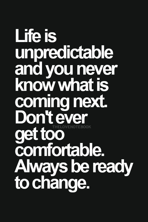 Life is unpredictable and you never know what is coming next. Don’t ever get too comfortable. Always be ready to change.