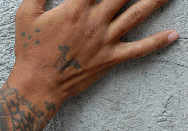 These dots differ greatly from the previous tattoo – five dots represents time done in prison. Also known as the quincunx, the four dots on the outside represent four walls, with the fifth on the inside representing the prisoner. This tattoo can be found internationally, among both American and European inmates. The dots are typically found on an inmate’s hand, between the thumb and forefinger.