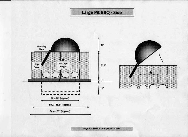 Use an 8 foot black steel pipe for the spit with a gear welded to one end. If you do not know how to weld I would recommend making friends with someone who does know how to weld… Support it in the pit by hammering the 4′ x 1.5″ pipe 24 inches into the ground (leaving 24 inches above ground) at both ends of the BBQ. Weld horizontal arms at the recommended height and a V’ bracket to hold the rotating pipe.
